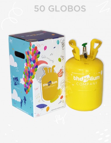 Botella helio desechable grande The Helium Company. Botella de 0,45m3 de helio para inflar globos de látex y de foil. Con válvula flexible y llave de paso de máxima seguridad.