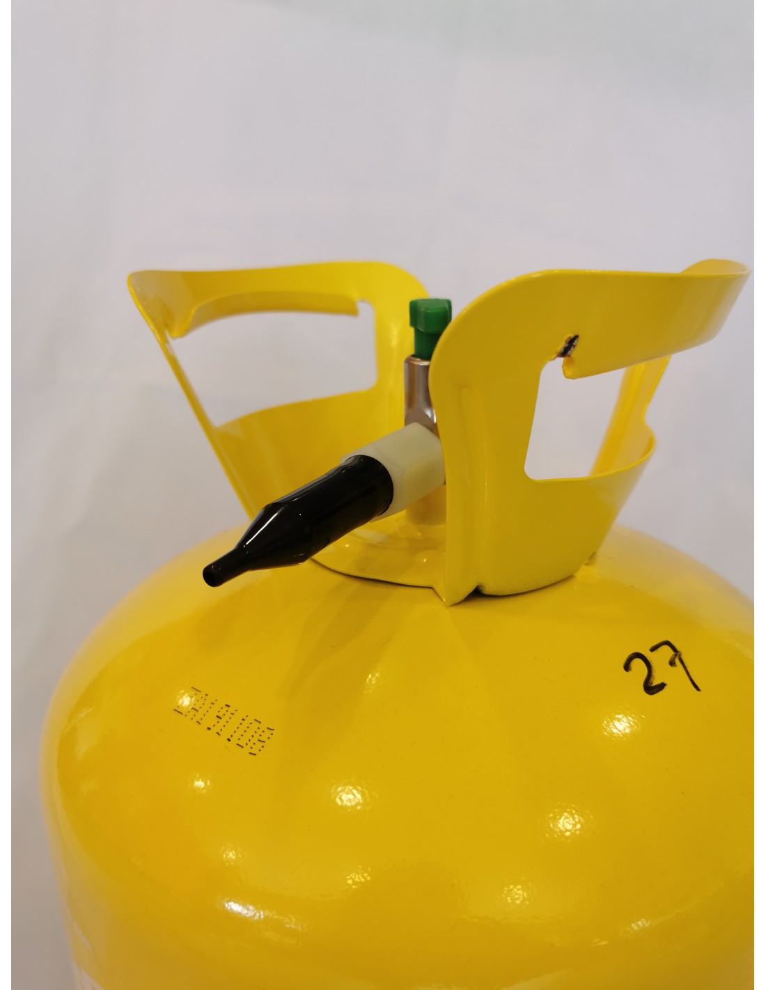 Normas de seguridad: Mantener la bombona, globos y cinta fuera del alcance de los niños. No inhalar el helio, puede causar graves lesiones e incluso la muerte. No colocar el inyector de la bombona en nariz o boca. Utilizar este producto en zona bien ventilada. No utilizar en espacios reducidos. El helio puede disminuir e incluso eliminar el oxígeno para respirar. No recargar la bombona con ningún material. No exponer la bombona al calor o fuego directo. No almacenar la bombona en zonas húmedas. Instrucciones para el reciclado o desecho de la bombona: Bombona no recargable. En el exterior, cerrar la válvula de presión y con la mano o una herramienta apropiada, desenroscar el inyector, después abrir la válvula para que salga la presión residual. Entrega la bombona a un centro de reciclaje o deposítela en un contenedor amarillo.